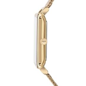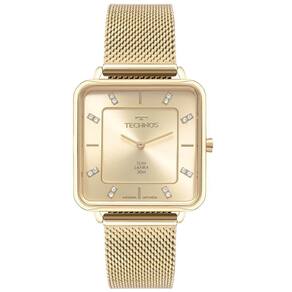 Relógio Technos Slim feminino, com design monocromático e caixa quadrada. Seu diferencial está na construção da caixa, fina e sofisticada, e em seu mostrador minimalista, com aplicação de pedras nos marcadores de hora e assinatura de linha. Com pulseira de mesh e vidro de safira, é um relógio que, além de ser leve e confortável em qualquer pulso, entrega alta resistência a riscos e arranhões. Produto 100% em aço inoxidável em banho dourado, com máquina quartz japonesa Miyota e resistência à água de 50m. Tamanho de caixa 32mm.