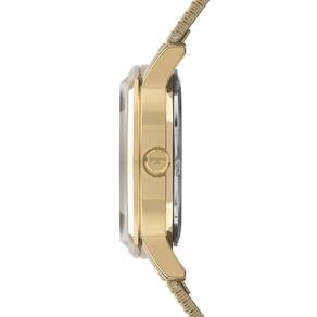A pulseira em aço dourado com malha trabalhada garante conforto ao uso diário e um encaixe agradável no pulso, além de elevar o padrão estético do modelo. Com resistência à água de 50 metros, o relógio oferece mais segurança para situações cotidianas, como respingos e contato leve com água.