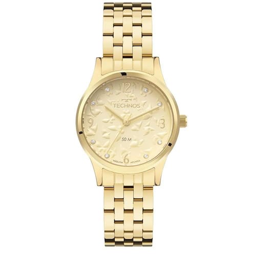 O Relógio Technos Feminino Trend Dourado - 2036NBN/1X combina sofisticação e delicadeza, com caixa de 32 mm e mostrador dourado texturizado com desenhos em relevo, adornado por marcadores com cristais que acrescentam brilho e charme ao visual.