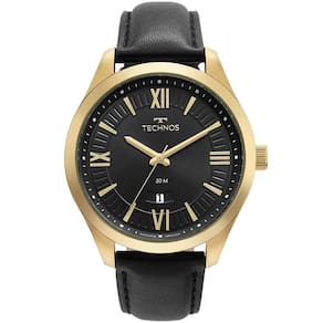 - Marca: Technos - Gênero: Masculino - Modelo: 2115MXVS/0P - Pulseira: Couro Preto - Tamanho: 46 mm - Resistência à água: 50 m - Garantia: 1 ano - Mecanismo: Quartzo - Vidro: Cristal Mineral