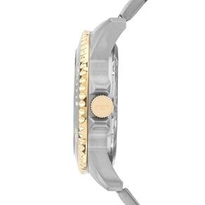 A linha Acqua apresenta seu novo modelo, com o clássico design para mergulho. Ele possui elementos indispensáveis para aventuras submersas, como o aro externo giratório com acabamento corrugado e lente antireflexo com lupa de calendário, além do mostrador com ponteiros e marcadores de hora luminescentes. Seu mostrador ainda conta com um acabamento degradê colorido e formas geométricas nos marcadores de hora. Produto 100% em aço inoxidável, com máquina quartz japonesa Miyota, calendário e resistência à água de até 150 metros