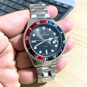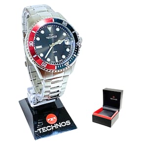 Marca: Technos Modelo: 2415DZ/1P Tipo de relógio: Analógico Gênero: Masculino Cor da caixa: Prateado Cor da pulseira: Prateado Estilo: Casual Alarme: Não Cronômetro: Não Calendário: Sim Luz: Não – ponteiros e marcadores fluorescentes Resistência à água: Sim – 15 ATM = 150 metros Tipo de fecho: Dobrável, com trava lateral Material da caixa: Aço Inoxidável Material da pulseira: Aço Inoxidável Características do vidro: Vidro mineral Tamanho da caixa: 45 mm Espessura da caixa: 14 mm Comprimento da pulseira: 25 cm Largura da pulseira: 20 mm Tampa do fundo: Rosqueado Peso: 159 Gramas Alimentação: Bateria Garantia do Fabricante: 12 meses Fabricante: Technos da Amazônia Ind e Com S/A