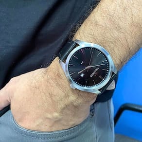 Marca: Technos Modelo: 2115MSGS/0P Tipo de relógio: Analógico Gênero: Masculino Cor da caixa: Prateado Cor da pulseira: Preto Estilo: Casual Alarme: Não Cronômetro: Não Calendário: Sim Luz: Não Resistência à água: Sim – 50 ATM = 50 metros Tipo de fecho: Fivela Simples Material da Caixa: Aço Inoxidável Material da Pulseira: Couro Características do vidro: Cristal Mineral Tamanho da caixa: 45 mm Espessura da caixa: 11 mm Comprimento da pulseira: 24 cm Largura da pulseira: 21 mm Tampa do fundo: Rosqueado Peso: 74 Gramas Alimentação: Bateria Garantia do Fabricante: 12 meses Fabricante: Technos da Amazônia Ind e Com S/A