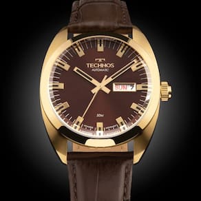 Para celebrar o centenário da Technos, apresentamos uma coleção especial em homenagem ao ano de chegada da Technos ao Brasil, em 1958, com design inspirado nos relógios lançados pela marca na década de 50. São modelos com maquinismo automático japonês, com presença do day-date, 21 jewels e reserva de marcha de 42 horas. Todos os modelos da coleção apresentam lente com acabamento facetado, fundo de vidro rosqueado e acompanham estojo especial. Produto 100% em aço inoxidável, com maquinismo automático japonês e resistência à água de 50 metros.