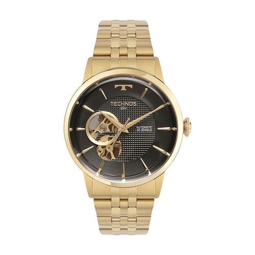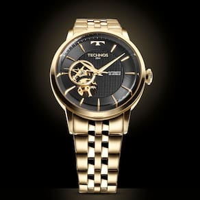 Relógio Technos Masculino Automatico Dourado - G3265au/1p G3265au/1p A linha Automático surpreende com sua nova coleção. Com maquinismo automático, a coleção apresenta o sofisticado mostrador ?open heart?, que possui uma pequena abertura nas posições de 7/9 horas, que permite a visualização das engrenagens, com o mesmo banho do relógio, e do movimento mecânico. A coleção ainda conta com a elegante lente abaulada e caixa com fundo de vidro, que mescla entre os acabamentos polido e escovado. Seu mostrador é complementado pela aplicação de textura discreta e assinatura de linha. Produto 100% em aço inoxidável, com maquinismo automático e resistência à água de 50 metros. Versões com pulseira em aço 5 links ou em couro croco, caixa redonda ou caixa em forma de barril. Banho - Dourado Tipo - Automático Cor da Caixa - Dourado Material da Pulseira - Aço Formato - Redondo Cor do Mostrador - Preto Tipo de Fecho - Trava por Pressão Garantia - 12 Meses Cor da Pulseira - Dourado Largura da Caixa (cm) - 4,2 Resistência à Água - 5 ATM plaintext_description_meli - Relógio Technos Masculino Automatico Dourado - G3265AU/1PA linha Automático surpreende com sua nova coleção. Com maquinismo automático, a coleção apresenta o sofisticado mostrador ?open heart?, que possui uma pequena abertura nas posições de 7/9 horas, que permite a visualização das engrenagens, com o mesmo banho do relógio, e do movimento mecânico. A coleção ainda conta com a elegante lente abaulada e caixa com fundo de vidro, que mescla entre os acabamentos polido e escovado. Seu mostrador é complementado pela aplicação de textura discreta e assinatura de linha. Produto 100% em aço inoxidável, com maquinismo automático e resistência à água de 50 metros. Versões com pulseira em aço 5 links ou em couro croco, caixa redonda ou caixa em forma de barril. meli_title - Relógio Technos Masculino Automatico Dourado - G3265AU/1P Modelo_ML - Relógio Technos Masculino Automatico Dourado - G3265AU/1P Cor - Dourado Tamanho - Médio Gênero - Masculino