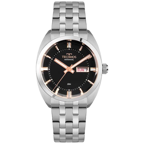 Para celebrar o centenário da Technos, apresentamos uma coleção especial em homenagem ao ano de chegada da Technos ao Brasil, em 1958, com design inspirado nos relógios lançados pela marca na década de 50. São modelos com maquinismo automático japonês, com presença do day-date, 21 jewels e reserva de marcha de 42 horas. Todos os modelos da coleção apresentam lente com acabamento facetado, fundo de vidro rosqueado e acompanham estojo especial. Produto 100% em aço inoxidável, com maquinismo automático japonês e resistência à água de 50 metros.