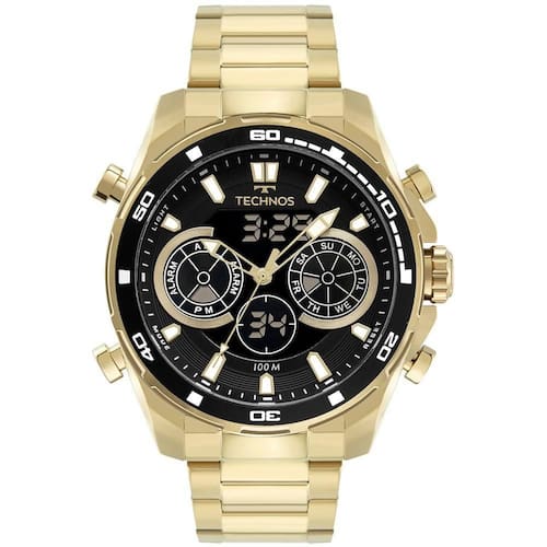 Relogio Technos Masculino Digitech Dourado - Bj3530aa/1p Bj3530aa/1p Relógio Technos Digiana masculino com caixa e pulseira de aço inox em banho dourado, aro com marcações, módulo digital e maquinismo analógico. Seu mostrador possui detalhes em camadas, dando profundidade à peça, e sua caixa é robusta, o que transmite a essência imponente do relógio. Possui resistência à água de 10 ATM e tamanho de caixa 48mm. Banho - Dourado Tipo - Ana Digi Cor da Caixa - Dourado Material da Pulseira - Aço Formato - Redondo Cor do Mostrador - Preto Tipo de Fecho - Trava de Segurança Garantia - 12 meses Cor da Pulseira - Dourado Largura da Caixa (cm) - 4,8 Resistência à Água - 10 ATM meli_title - Relógio Masculino Technos Digiana Dourado Loja Oficial Modelo_ML - BJ3530AA/1P Relógio Technos Masculino Digiana autêntico Dourado com Pulseira de Aço Inoxidável Tela Analógica-Digital e Caixa com 48 mm na cor Dourado Fundo Rosqueado à Prova D'água até 100 Metros Presente para Dia dos Pais Mães Namorados Natal Cor - Dourado Tamanho - Grande Gênero - Masculino
