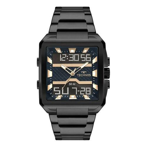 Relógio technos masculino digitech preto - bj3758ac/1a Cor: preto Relógio technos bj3758ac/1a Relógio digitech, possui caixa robusta na cor preto, lente abaulada, e detalhes metálicos no mostrador azul. Produto 100% em aço inoxidável, banhado em preto, com máquina anadigi e resistência à água de 50 metros. Relógio perfeito para quem gosta de ousar. Informações básicas - marca: technos - referência: bj3758ac/1a - : 1 ano diretamente com o fabricante Funções: - horario analogico - horario digital 12/24hrs - iluminação para visualização em ambientes escuros - marcadores e ponteiros fosforescentes facilitando a visualização - cronometro - alarme - timer - calendário Características - composição do vidro: cristal mineral - material da caixa: aço - cor da caixa: preto - material da pulseira: aço - cor da pulseira: preto - bateria Medidas: Diametro da caixa: 42.5 mm Largura da pulseira: 31 mm Resistência à água 5 atm - wr: 50 mts - pode lavar as mãos: sim - pode usar em água corrente: sim - pode usar na piscina: sim - pode usar em mergulho profundo: não Acompanha: - manual de instruções - embalagem - certificado de Ainda esta com dúvida Marca: Não Informado