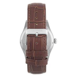 Vidro: Cristal Mineral Material da caixa: Aço Cor da caixa: Prata Material da pulseira: Couro Cor da pulseira: Marrom Diâmetro da caixa: 4,2 cm Mecanismo: Quartz Funções: Analógico / Calendário Resistência à água 5 atm / Consulte sempre o manual antes de molhar seu relógio