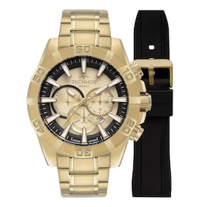 Relógio Technos Legacy com caixa robusta e aro externo giratório trabalhado com relevos. Seu mostrador é rico em detalhes, com efeito de profundidade e assinatura de linha. É um modelo troca-pulseira, com pulseira extra de silicone na cor preta. Produto 100% em aço inoxidável em banho dourado, com máquina quartz Japonesa Miyota, calendário, cronógrafo e resistência à água de 100m. Tamanho de caixa 51,5mm.