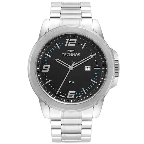 Vidro: Cristal Mineral Material da caixa: Aço Cor da caixa: Prata Material da pulseira: Aço Cor da pulseira: Prata Diâmetro da caixa: 48 mm Cor do mostrador: Preto Mecanismo: Quartz Funções: Analógico / Calendário Resistência à água : 5 atm / Consulte sempre o manual antes de molhar seu relógio