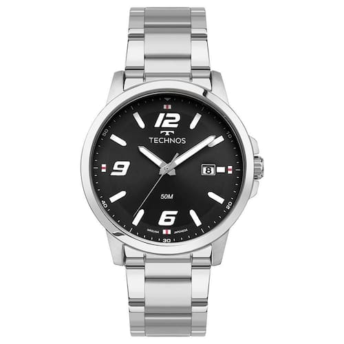 Relógio Technos Racer com design esportivo atemporal. Seu mostrador de fácil leitura conta com números grandes nas posições de 6/9/12 horas e aro interno com marcações dos minutos. Produto 100% em aço inoxidável, com máquina quartz japonesa Miyota, calendário e resistência à água de 50 metros