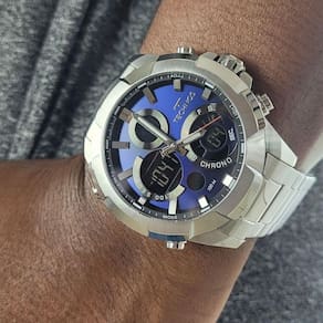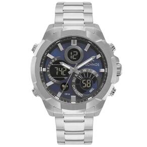 marca: technos modelo:w23721aac/1a linha/coleção: perfomance tipo de mostrador: analógico-digital mecanismo: quartzo alimentação: bateria formato da caixa: redondo cor do mostrador: azul com index e ponteiros prata cor da pulseira: prata material da caixa: aço inox material da pulseira: aço inox tipo de fecho: dobrável com botão resistência à água: 100 metros calendário: sim cronômetro: sim alarme: sim luz noturna: sim