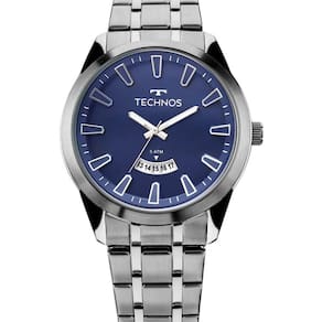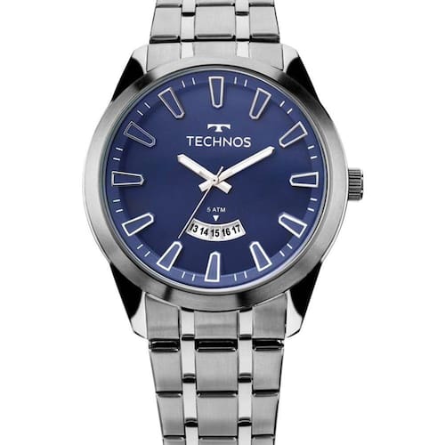 Marca: Technos Gênero: Masculino Modelo: Casual, Fashion, Social Composição do Vidro: Cristal Mineral Material da Caixa: Aço Inoxidável Cor da Caixa: Prata Tamanho da Caixa: 46mm / 4,6 cm Material da Pulseira: Aço Cor da Pulseira: Prata Cor do Mostrador: Azul Funções: Analógico / Calendário Nota Fiscal Eletrônica Certificado de Garantia da Marca Garantia: 12 meses