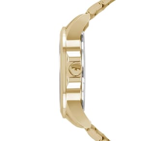 Relógio Racer apresenta um novo modelo de design esportivo, que conta com mostrador de fácil leitura na cor preto, numeração arábica e detalhes com cores em destaque, além da pulseira de aço em 3 links. Produto 100% em aço inoxidável, banhado em dourado, com máquina quartz japonesa Miyota e resistência à água de 50 metros.