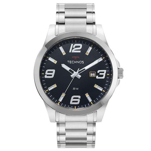 Relógio Technos Racer apresenta um novo modelo de design esportivo, que conta com mostrador de fácil leitura na cor preta, numeração arábica e calendário na posição de 3 horas, além de apresentar pulseira de aço em 3 links. Produto 100% em aço inoxidável, banhado em prata, com máquina quartz japonesa Miyota e resistência à água de 50 metros.