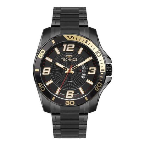 Gênero: Masculino Banho: Preto Tipo: Analógico Cor da Caixa: Preto Material da Pulseira: Aço Formato: Redondo Tipo de Fecho: Trava Lateral : 12 meses Cor da Pulseira: Preto Largura da Caixa cm : 4,6 Resistência à Água: 5 ATM Relógio Technos Racer apresenta seu mais novo lançamento, de design esportivo, com aro trabalhado com detalhes de cor e design, e mostrador texturizado de fácil leitura na cor champanhe com numeração arábica, detalhes cores em destaque e calendário, além de contar com pulseira de aço em 3 links. Produto 100% em aço inoxidável, banhado em preto, com máquina quartz japonesa Miyota e resistência à água de 50 metros. Marca: Não Informado