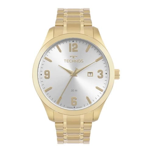 Relógio Technos Masculino Ref: 2115nby/1k Classic Dourado Descrição do Produto: Caixa de Aço Pulseira de Aço Fundo de Rosca Resistente à Água 5 Atm Diâmetro / Largura da Caixa: 46.00 MM Funções: Analógico, Calendário Alimentação do Maquinário: Bateria Mostrador prateado com números de 1 Ano Marca: Não Informado