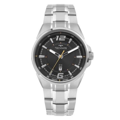 Relógio Technos Masculino Ref: 2115txy/1p Skymaster Prateado Descrição do Produto: Caixa de Aço Pulseira de Aço Fundo Rosqueado Resistente à Água 5 Atm Diâmetro / Largura da Caixa: 45.00 MM Funções: Analógico, Calendário Alimentação do Maquinário: Bateria Mostrador preto com Números Maquinário Japonês de 1 Ano Marca: Não Informado