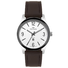 Relógio Technos Masculino Ref: 2115tzy/0k Classic Prateado Descrição do Produto: Caixa de Aço Pulseira de Couro Marrom Café Fundo Rosqueado Resistente à Água 5 Atm Diâmetro / Largura da Caixa: 42.00 MM Funções: ógico, Calendário Alimentação do Maquinário: Bateria Mostrador Prateado com Números Aro Fixo Preto Maquinário Japonês de 1 Ano Marca: Não Informado