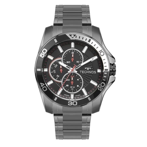 Relógio Technos Masculino Ref: 6p27duw/1p Multifunção Grafite Descrição do Produto: Caixa de Aço Pulseira de Aço Fundo de Rosca Resistente à Água 5 Atm Diâmetro / Largura da Caixa: 46.00 MM Funções: Analógico, Multifunção Alimentação do Maquinário: Bateria Mostrador Preto com detalhes em vermelho Máquina Japonesa Aro Fixo Preto/Prateado de 1 Ano Marca: Não Informado Ean: 7891530853371