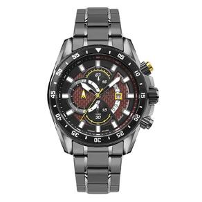 Relógio Technos Masculino Ref: Os1abp/1n Cronógrafo Grafite Descrição do Produto: Caixa de Aço Pulseira de Aço Fundo Rosqueado Resistente à Água 10 Atm Vidro: Cristal Mineral Diâmetro / Largura da Caixa: 50.00 MM Funções: Analógico, Cronógrafo, Calendário Alimentação do maquinário: Bateria Mostrador Bordô com detalhes em amarelo Aro Fixo Preto de 1 Ano Marca: Não Informado Ean: 7891530848087