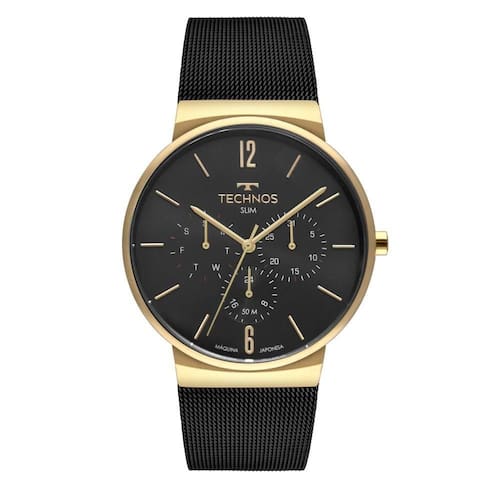 Relógio Technos Masculino Slim Bicolor - 6p29aln/1p 6p29aln/1p Relógio Technos Slim em uma Nova versão de modelo best-seller da linha masculina, com caixa fina e sofisticada. Seu mostrador apresenta a elegância dos 3 olhos presentes no maquinismo multifunção e assinatura de linha. Com pulseira de aço em mesh e vidro de safira, é um relógio que, além de ser leve e confortável em qualquer pulso, entrega alta resistência a riscos e arranhões. Produto 100% em aço inoxidável, com máquina quartz japonesa Miyota multifunção e resistência à água de 50 metros. Banho - Bicolor Tipo - Multifunção Cor da Caixa - Dourado Material da Pulseira - Aço Formato - Redondo Cor do Mostrador - Preto Garantia - 12 Meses Cor da Pulseira - Preto Largura da Caixa (cm) - 4,0 Resistência à Água - 5 ATM plaintext_description_meli - Relógio Technos Masculino Slim Bicolor - 6P29ALN/1PRelógio Technos Slim em uma Nova versão de modelo best-seller da linha masculina, com caixa fina e sofisticada. Seu mostrador apresenta a elegância dos 3 olhos presentes no maquinismo multifunção e assinatura de linha. Com pulseira de aço em mesh e vidro de safira, é um relógio que, além de ser leve e confortável em qualquer pulso, entrega alta resistência a riscos e arranhões. Produto 100% em aço inoxidável, com máquina quartz japonesa Miyota multifunção e resistência à água de 50 metros. meli_title - Relógio Technos Masculino Slim Bicolor - 6P29ALN/1P Modelo_ML - Relógio Technos Masculino Slim Bicolor - 6P29ALN/1P Cor - Bicolor Tamanho - Médio Gênero - Masculino