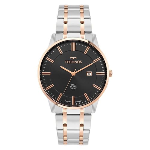Relógio Technos Masculino Slim Bicolor - Gm10yw/1f Gm10yw/1f Relógio Technos Slim com uma nova caixa prata com aro rosé, de construção fina e sofisticada. Ele apresenta uma elegante pulseira de aço em 5 links, mostrador com design minimalista e assinatura de linha; e vidro de safira, que oferece alta resistência a riscos e arranhões. Produto 100% em aço inoxidável, com máquina quartz japonesa Miyota, calendário e resistência à água de 50 metros. Pulseira 100% em aço inoxidável bicolor prata e rosé. Banho - Bicolor Tipo - Analógico Cor da Caixa - Prata Material da Pulseira - Aço Formato - Redondo Cor do Mostrador - Grafite Garantia - 12 Meses Cor da Pulseira - Bicolor Largura da Caixa (cm) - 4,2 Resistência à Água - 5 ATM plaintext_description_meli - Relógio Technos Masculino Slim Bicolor - GM10YW/1FRelógio Technos Slim com uma nova caixa prata com aro rosé, de construção fina e sofisticada. Ele apresenta uma elegante pulseira de aço em 5 links, mostrador com design minimalista e assinatura de linha; e vidro de safira, que oferece alta resistência a riscos e arranhões. Produto 100% em aço inoxidável, com máquina quartz japonesa Miyota, calendário e resistência à água de 50 metros. Pulseira 100% em aço inoxidável bicolor prata e rosé. meli_title - Relógio Technos Masculino Slim Bicolor - GM10YW/1F Modelo_ML - Relógio Technos Masculino Slim Bicolor - GM10YW/1F Cor - Bicolor Tamanho - Médio Gênero - Masculino