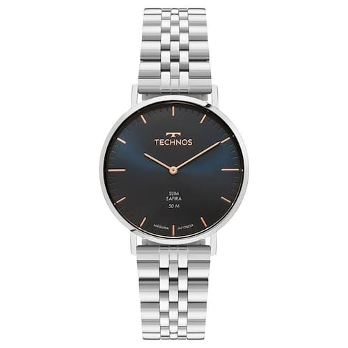 Relógio Technos Masculino Slim Prata - 2025luh/1a Relógio Techno Slim apresenta seu novo modelo de design sofisticado e minimalista, através da caixa ultrafina, trazendo mais conforto ao pulso, lente de safira, que é altamente resistente a riscos e arranhões, assinatura de linha no mostrador na cor azul e marcadores de hora em índexes. Produto 100% em aço inoxidável, banhado em prata, com resistência à água de 50 metros e pulseira de aço inoxidável em 5 links. Banho - Prata Tipo - Analógico Cor da Caixa - Prata Material da Pulseira - Aço Material da Caixa - Aço Formato - Redondo Cor do Mostrador - Azul Garantia - 12 meses Cor da Pulseira - Prata Largura da Caixa (cm) - 4,0 Resistência à Água - 5 ATM Cor - Prata Tamanho - Médio Gênero - Masculino