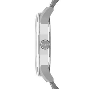 O mostrador branco proporciona excelente contraste com os numerais e ponteiros em tom prata, garantindo ótima leitura das horas. Seu layout equilibrado e de fácil visualização reforça a proposta do relógio, que une praticidade e elegância em um único modelo.