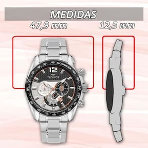Caixa Aço Pulseira Aço Mostrador Analogico Resistência 10 ATM Tamanho da Caixa 47,9 mm Espessura da Caixa 12,5 mm Tamanho da Pulseira 23 cm Banho Prata Ean: 7891530794162