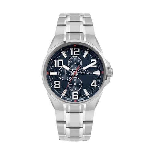 Estamos há mais de 50 anos no mercado oferecendo uma ampla variedade de acessórios, incluindo relógios e óculos de sol, com as melhores marcas e estilos. Além disso, a nossa equipe é treinada para oferecer um atendimento excepcional, garantindo que cada cliente seja tratado com o respeito e a atenção que merece.Realizando a compra, não deixe de nos avaliar Sua opinião é muito importante para aperfeiçoar cada vez mais o nosso trabalho.ESPECIFICAÇÕES TÉCNICAS- Marca: Technos - Referência: 6P27DUT/1A- Gênero: Masculino - Tipo de mostrador: Analógico- Tipo de fecho: Trava Lateral - Cor da caixa: Prata- Cor do mostrador: Azul-escuro - Cor da pulseira: Prata- Material da caixa: Metal - Material da pulseira: Aço - Largura da caixa: 4,5cm- Resistência à água: 5 ATM 50m - : 12 meses Marca: Não Informado Ean: 7891530853395