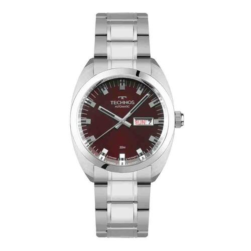 Estamos há mais de 50 anos no mercado oferecendo uma ampla variedade de acessórios, incluindo relógios e óculos de sol, com as melhores marcas e estilos. Além disso, a nossa equipe é treinada para oferecer um atendimento excepcional, garantindo que cada cliente seja tratado com o respeito e a atenção que merece.Realizando a compra, não deixe de nos avaliar Sua opinião é muito importante para aperfeiçoar cada vez mais o nosso trabalho.ESPECIFICAÇÕES TÉCNICAS- Marca: Technos- Referência: 8205OV/1R- Gênero: Masculino - Tipo de mostrador: Analógico - Tipo de movimento: Automático - Função: Calendário duplo- Tipo de fecho: Trava lateral- Cor da caixa: Prata- Cor do mostrador: Marrom- Cor da pulseira: Prata- Material da caixa: Metal- Material da pulseira: Couro - Largura da caixa: 4cm- Resistência à água: 5 ATM 50m - : 12 meses Marca: Não Informado Ean: 7891530860218