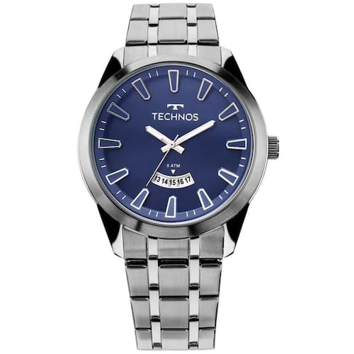 Relógio Masculino Technos Racer 2115KZB/1A, analógico, com data,cor da caixa prata e pulseira de aço prata. Possui caixa de 4,6 cm e possui resistência à água de 5 ATM. Inspirado no universo automobilístico, este modelo possui características fortes. O mostrador na cor azul com calendário e detalhes em alto relevo reforça a esportividade do relógio. É um produto 100% autêntico, acompanha procedência garantida e Garantia de 24 meses.