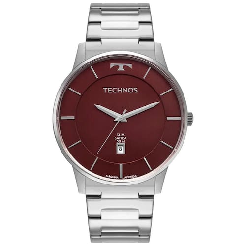 Relógio Technos Slim GM10YQ/1N Prata A linha Technos Slim une sofisticação e minimalismo em seu design. Com caixa ultrafina e lente de safira altamente resistente a riscos e arranhões, os modelos oferecem versões analógicas, com data e dual time, garantindo versatilidade para diferentes ocasiões de uso. Os mostradores contam com cores marcantes reforçando a modernidade da coleção. Especificações Técnicas Mecanismo: Máquina Quartz Japonesa Miyota Gênero: Masculino Visor: Vinho Vidro: Cristal Mineral Prova d'água: 50m Características: Caixa e pulseira em aço inoxidável Diâmetro da caixa: 42 mm : 1 ano pelo fabricante Technos Marca: Não Informado Ean: 7891530871894