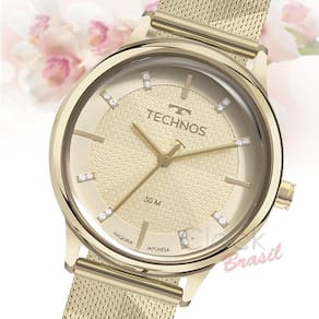 o novo modelo monocromático da linha style apresenta mostrador com textura e aplicação de pedras delicadas nos marcadores de hora. Seu design moderno traz à tona uma pulseira de mesh diferenciada, que conta com uma textura semelhante a do mostrador. Produto 100% em aço inoxidável em banho dourado, com máquina quartz japonesa miyota e resistência à água de 50m. Coleção style