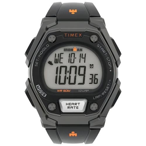 Mecanismo: Analógico (Quartzo) Gênero: Masculino Funções: alarme, timer, cronômetro, luz, monitor de frequência cardíaca, contador de passos e contador de calorias. Prova d'água: 100m Características: com caixa e pulseira em resina Diâmetro da caixa: 45 mm Largura da Pulseira: 19 mm Garantia: 1 ano pelo fabricante Timex