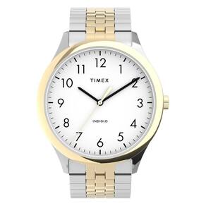O Timex TW2U40000 une elegância e simplicidade em um design refinado e atemporal. Com caixa de 40mm e pulseira de aço inoxidável bicolor (prata e dourado), é a escolha perfeita para quem aprecia um relógio clássico, porém moderno.