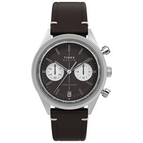 Relógio Marlin Jet Quartz Cronograph TW2Y24700 Couro Uma Nova Abordagem ao Retrofuturismo O novo Marlin Jet Quartz captura os ideais de design futurista dos anos 60 com detalhes discretos e uma elegante caixa de 40mm em aço inoxidável escovado. No entanto, sua característica mais marcante é o cristal abaulado feito de Hesalite uma forma refinada de acrílico, apreciada por sua clareza e facilidade de manutenção, o cristal cobre toda a superfície superior da caixa do relógio, envolvendo o bisel ranhurado com um índice taquimétrico e conferindo uma profundidade cativante à aparência retrofuturista do relógio.O mostrador côncavo prateado apresenta submostradores contrastantes e uma janela de data ao lado do marcador das 6 horas. Completando o visual, uma pulseira de 6 elos em aço inoxidável escovado e polido. Especificações Técnicas Mecanismo: Quartzo Bateria Gênero: Masculino Visor: Prata Vidro: cristal mineral abaulado Funções: Cronógrafo, taquímetro, calendário e tampa rosqueada Prova d'água: 50m Características: caixa em aço inoxidável, pulseira em couro marrom Diâmetro da caixa: 40 mm Largura da Pulseira: 20 mm : 1 ano pelo fabricante Timex Marca: Não Informado