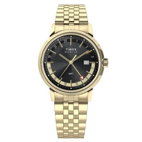 Relógio Timex Marlin GMT TW2Y47700 Dourado O Marlin Quartz GMT traz o acompanhamento de dois fusos horários para o nosso Marlin dos anos 60. A peça vem em uma caixa polida de aço inoxidável reciclado de 40 mm, com mostrador em acabamento sunray que exibe marcadores facetados, janela de data e um sofisticado índice GMT tonal, acompanhado por um destacado ponteiro GMT com triângulo vermelho. Mantendo-se fiel à herança Marlin, este relógio apresenta um cristal acrílico abaulado de estilo vintage e vem acompanhado de uma pulseira de aço inoxidável escovado e polido. Especificações Técnicas Mecanismo: Quartzo Bateria Gênero: Masculino Visor: Preto Vidro: cristal mineral abaulado Funções: GMT, calendário e tampa rosqueada Prova d'água: 50m Características: caixa e pulseira em aço inoxidável Diâmetro da caixa: 40 mm Largura da Pulseira: 20 mm : 1 ano pelo fabricante Timex Marca: Não Informado Ean: 7909669214694