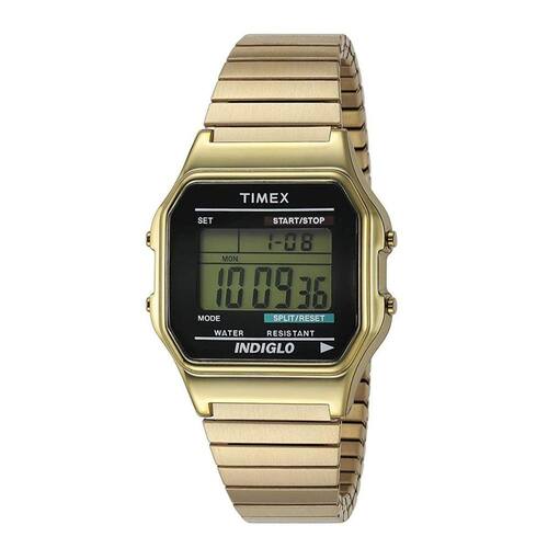Timex Modelo t78677 Quadrado da Forma do Item Tipo de material da janela do mostrador Acrílico Tipo de Exibição Digital Banda de expansão de fecho Material da Caixa Resina Diâmetro da caixa 34 milímetros Espessura da caixa 10 milímetros Material da pulseira Aço inoxidável Tamanho da banda Mens Standard Largura de banda 18 milímetros Faixa Cor Prata Cor do Mostrador Verde Material da moldura Resina Função bisel Estacionário Calendário Dia-Data-Mês Características especiais Cronógrafo, resistente à água, luminoso Movimento Quartzo Profundidade resistente à água 30 metros
