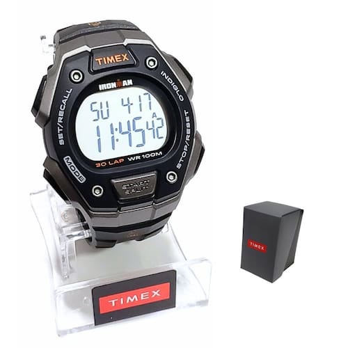 Marca: Timex Modelo: T5K821 Tipo de relógio: Digital Gênero: Masculino Cor da caixa: Preto Cor da pulseira: Preto Estilo: Esportivo Alarme: Sim Cronômetro: Sim Calendário: Sim Luz: Sim Resistência à água: Sim – 10 ATM = 100 metros Tipo de fecho: Fivela Simples Material da caixa: Resina Material da pulseira: Resina Características do vidro: Acrílico Tamanho da caixa: 45 mm Espessura da caixa: 13 mm Comprimento da pulseira: 24 cm Largura da pulseira: 22 mm Tampa do fundo: Parafusado Peso: 45 Gramas Alimentação: Bateria Garantia do Fabricante: 12 meses Fabricante: Timex Group B.V.