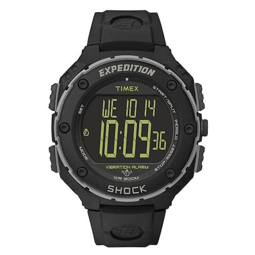 Relógio Timex Masculino Digital Expedition Shock T49950 Marca Timex Modelo T49950 Forma Redondo Cristal Acrílico, Resina Tipo de tela ou mostrador Digital Fecho Fivela Material da caixa Resina Diâmetro da caixa 50 milímetros Espessura da caixa 17 milímetros Material da faixa, pulseira ou tira Resina Largura da faixa, pulseira ou tira 22 milímetros Cor da faixa, pulseira ou tira Preto Cor do mostrador Preto Características especiais Alarme, cronógrafo, Temporizador, resistente à água, Resistente a choques Peso 77 g Movimento do relógio Quartzo Resistência à água 200 Metros Ean: 7909669138877