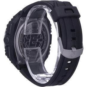 Características: com caixa em Resina Preta e pulseira em Poliuretano Preta