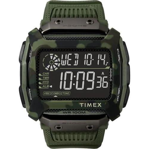 Relógio Timex Masculino Ref: Tw5m20400 Shock Digital Verde DESCRIÇÃO DO PRODUTO: Funções: Digital, Iluminação Indiglo Night Light , 3 Fusos Horários, Calendário, Cronógrafo de 100 Horas, 3 Alarmes Com função vibratória e função soneca de 5 minutos , Timer de 24h, Sinal Horário Opcional Resistência à Água: 100m Diâmetro da Caixa: 54 mm x 45 mm Características: com caixa em Resina Verde e pulseira em Poliuretano Macia Verde Vidro: acrílico Fundo Parafusado Alimentação do maquinário: Bateria Mostrador Preto com detalhes em verde Linha: Timex Shock Resistant de 1 Ano