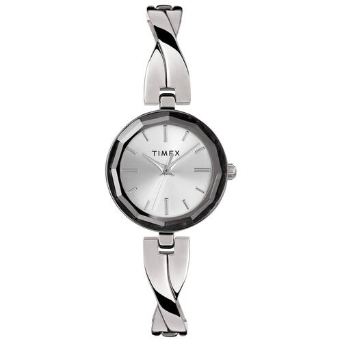 Timex Relógio feminino de cristal facetado de 26 mm, Prateado, Clássico