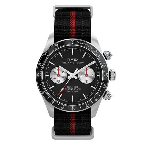 Relógio Timex Waterbury Heritage Cronógrafo TW2Y38900 O Waterbury Heritage Chronograph combina funcionalidade moderna com um design atemporal, apresentando um cronógrafo para medir o tempo decorrido e um aro taquimétrico preto para calcular a velocidade média. Complementando sua caixa de 39 mm em aço inoxidável escovado reciclado, está uma pulseira de tecido reciclado com listras, que remete ao estilo clássico e despretensioso da alfaiataria americana. De camada dupla para maior durabilidade e com sistema slip-thru que facilita colocar e retirar do pulso, o modelo transmite uma confiança casual e elegante. O mostrador preto ou prateado traz submostradores contrastantes e é protegido por um vidro mineral antirreflexo que garante melhor visibilidade. Os ponteiros com material luminoso asseguram leitura em ambientes de pouca luz, enquanto os índices aplicados e os detalhes refinados na coroa e nos botões completam o toque sofisticado do relógio. Especificações Técnicas Mecanismo: Quartzo Analógico bateria Gênero: Masculino Visor: Preto Vidro: Cristal Mineral com antirreflexo Funções: cronógrafo, taquímetro, ponteiros e marcadores das horas fosforescentes. Prova d'água: 50m Características: com caixa em aço inoxidável e pulseira em nato nylon .Diâmetro da caixa: 39 mm Largura da Pulseira: 20 mm : 1 ano pelo fabricante Timex Marca: Não Informado
