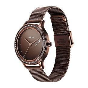 feminino com mostrador marrom analógico Titan em aço inoxidável, pulseira marrom - Titan Co Ltd Não