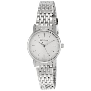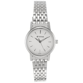 Relógio de pulseira metálica com mostrador prateado analógico Titan Quartz para mulheres - NS2593sm04