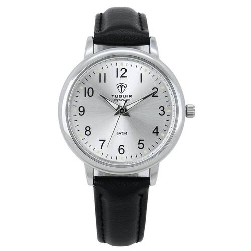 Características: com caixa em Metal e pulseira em Couro Ecológico Preto